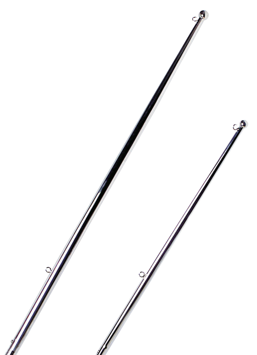 Rostfri flaggstång med låsning för att undvika att flaggstången hoppar ur sitt fäste.