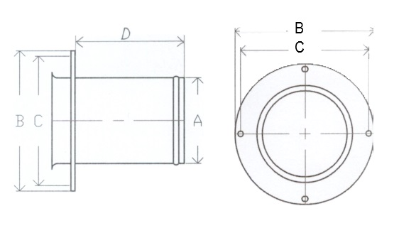 Bordsgenomföring rak med droppkant, RF, anslutning 76 mm