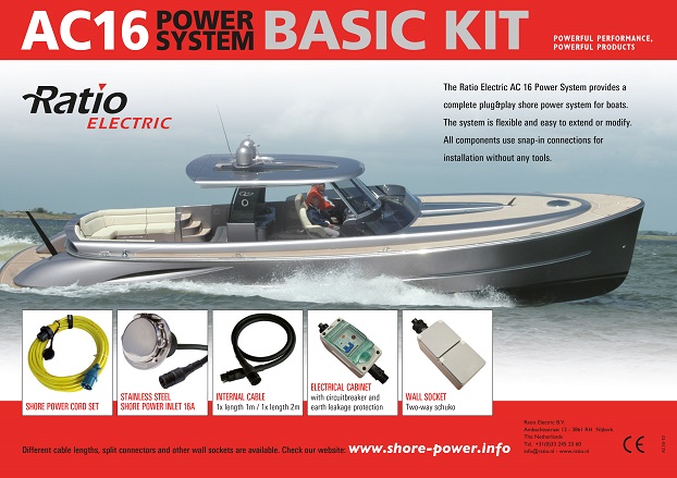 Ratio AC16 landströmssystem ger dig ett komplett elsystem i din båt och samtliga delar är Plug & Play och behöver inte installeras utav behörig elektriker.