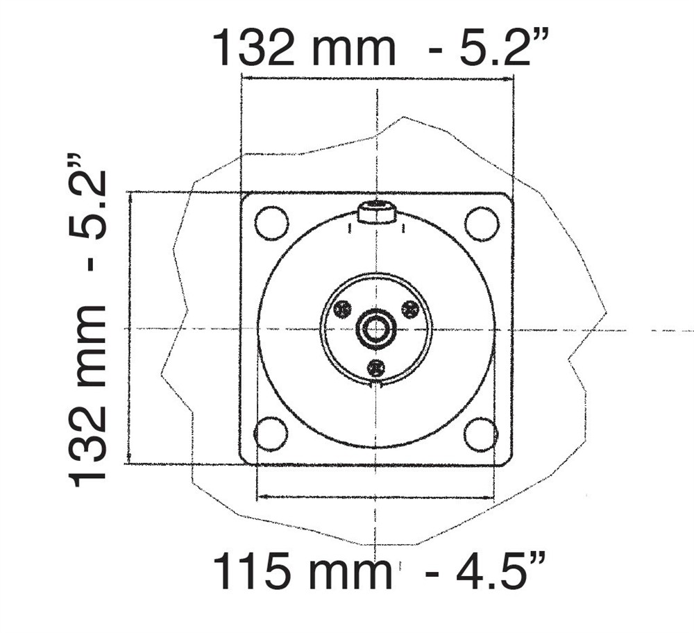 Fyrkantig monteringfläns för Ultraflex hydrauliska rattpumpar av modell UP25F, UP28F, UP33F, UP39F och UP45F.